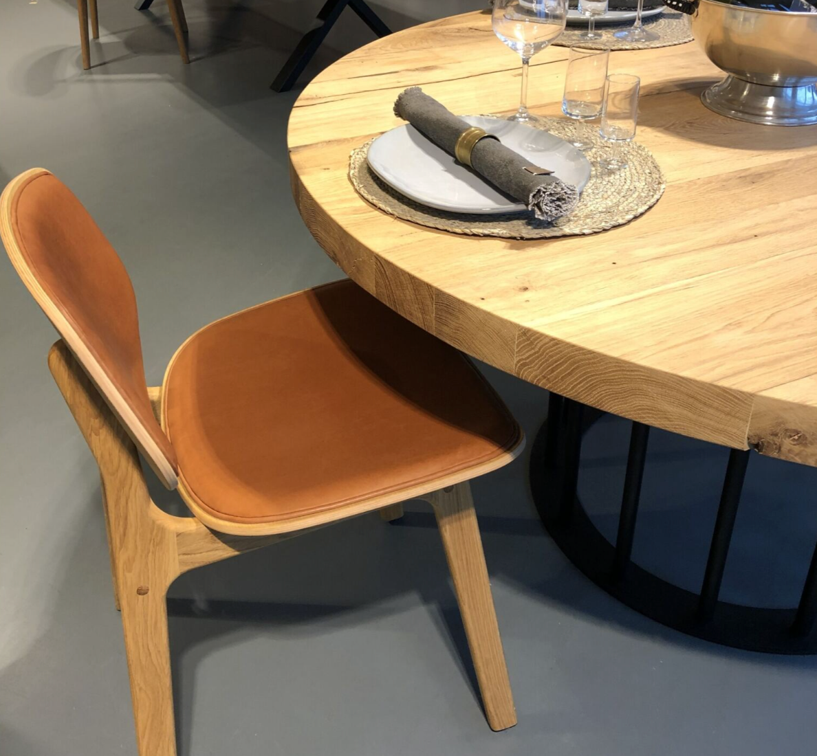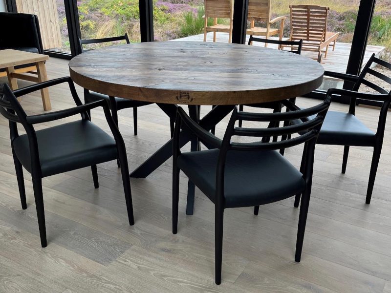 Massivt mørkolieret egetræ med ben i pulverlakeret stål